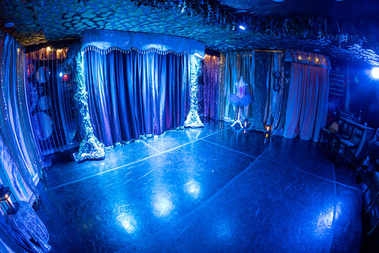 After months of painstaking work, The Love Show NYC is finally ready to reveal its intimate, baroque pop-up theater to the world! Tucked away in a secret corner of the Theater District, The Hidden Jewel Box Theater is a space like none other, a bohemian haven mixing decorative elements drawing from Rococo paintings, Victorian boudoirs, 1970s discotheques and Grimm fairy tales. Leaving The Hidden Jewel Box Theater is like awakening from a beautiful dream. How long can this dream last? Alas, not long. The building is marked for demolition, so experience it while you can. The location of the theater is strictly on a need-to-know basis and will be revealed only to those who have purchased tickets to a show.